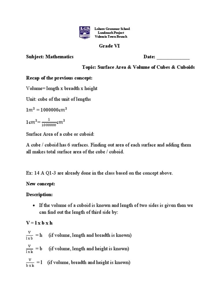 12 Best Images Of Surface Area And Volume Worksheets Grade 6